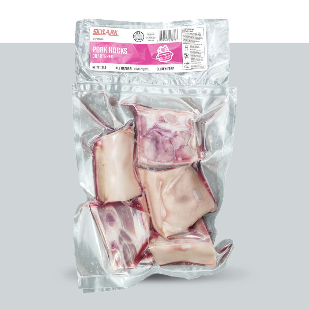 Our pork hocks are quartered cut and flash frozen to lock in freshness, then packaged in a 2 lb. bag. Perfect for braising with vegetables, they deliver rich, savory flavor and a tender texture for comforting, home-style meals.