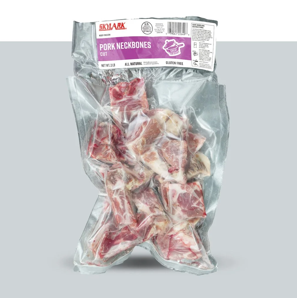Our pork neckbones are expertly cut and flash frozen to preserve freshness, then packaged in a 2 lb. bag. Slow cook for tender, fall-off-the-bone juiciness, or use the bones to create a rich, delicious gravy.